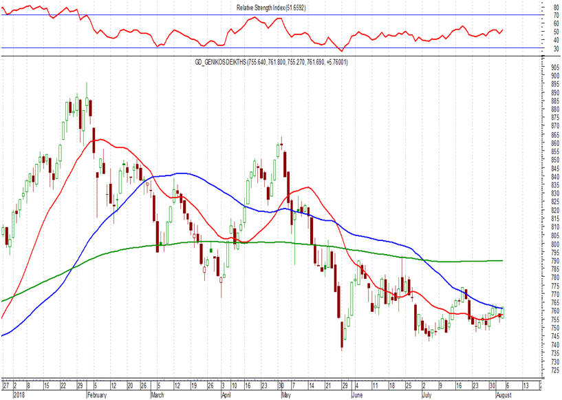 Με τη μιζέρια να αναμένεται να συνεχιστεί και αυτήν την εβδομάδα, ως στόχος παραμένει η διάσπαση των αντιστάσεων στα επίπεδα των 760 – 770 μονάδων (κλείσιμο Παρασκευής οι 761,69 μονάδες). Πάντως αυτές τις δύο εβδομάδες, μέχρι περίπου τις 20 Αυγούστου, ο τζίρος θα μπορούσε να φθάσει ακόμη και τα 10εκ ευρώ. Βέβαια το θετικό είναι ότι όπως είχαμε γράψει και την Παρασκευή, εκτός κάποιου αρνητικού απροόπτου, η αγορά δε δείχνει εύκολο να κινηθεί υψηλότερα, ωστόσο δε φαίνεται πως θα πάει προς αισθητά χαμηλότερα επίπεδα, αφού όποτε πάει να συμβεί αυτό και να χαθεί η επαφή με τα τόσο σημαντικά επίπεδα των 760 – 770 μονάδων, η αγορά βγάζει κάποια αντανακλαστικά.