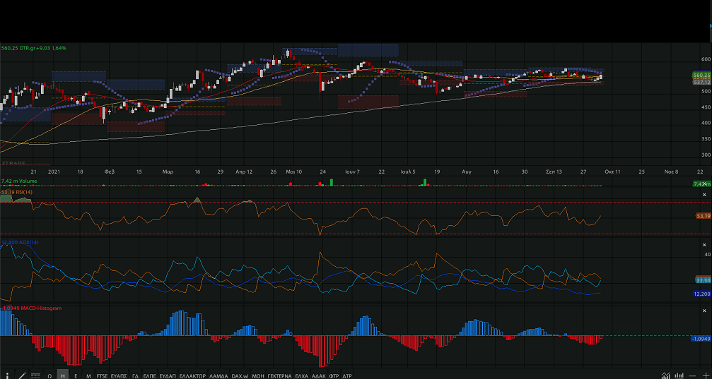 επίπεδα των 550 – 545 μονάδων, με κλείσιμο χθες στις 560,25
