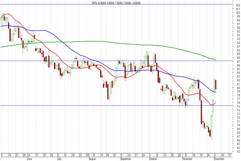 Χωρίς να εκπλήσσει μετά την τελευταία άνοδο της μετοχής, μεγάλη νευρικότητα καταγράφηκε την Τρίτη και την Τετάρτη στη μετοχή της Μυτιληναίος, με κλείσιμο χθες στα 8,10 ευρώ, +1,89%. Και η πρώτη προτεραιότητα (κατά τις επόμενες εβδομάδες), με την οποία συνδέεται η βελτίωση της εικόνας είναι μια παραμονή υψηλότερα των 7,80 – 7,90 και κυρίως των 7,50 – 7,55 ευρώ. Μόνο μένοντας υψηλότερα αυτών των επιπέδων θα μιλήσουμε για ουσιαστική βελτίωση της τεχνικής εικόνας. Σε διαφορετική περίπτωση, είμαστε αναγκασμένοι να πούμε πως η πρόσφατη πολύ καλή εικόνα της μετοχής ήταν απλά και μόνο μια αντίδραση και τίποτα περισσότερο, με κίνδυνο η μετοχή να επιστρέψει χαμηλότερα των 7,00 ευρώ και πάλι!!!