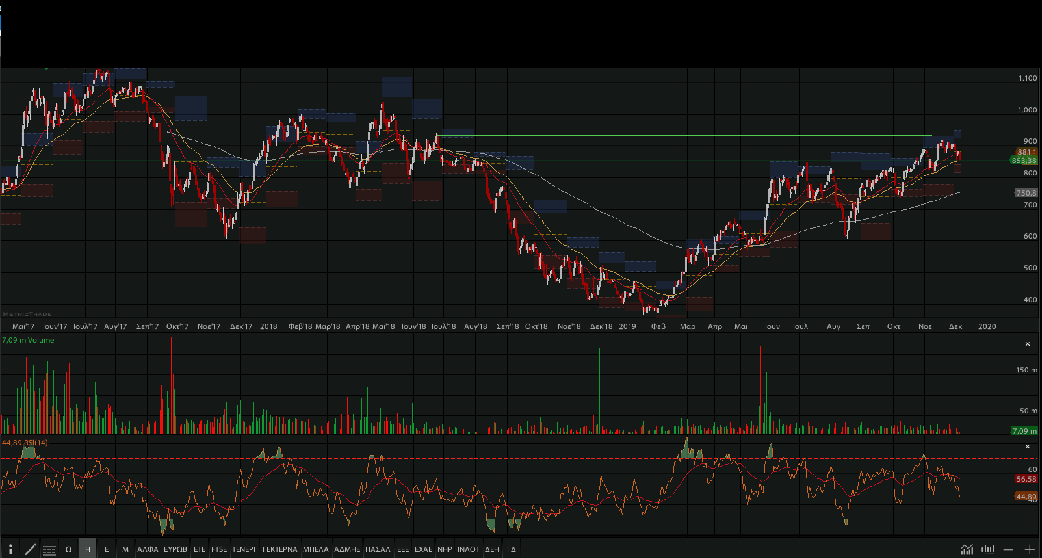 Με μεγάλες απώλειες 3,07%, στις 853,38 μονάδες, έκλεισε χθες ο τραπεζικός δείκτης. Και σε σχέση με πρόσφατα σχόλια μας στο www.greekfinanceforum.com. Υπάρχει μεγάλη ανάγκη να μη χαθούνε οι στηρίξεις στις 850 μονάδες. Σε διαφορετική περίπτωση, τουλάχιστον η βραχυπρόθεσμη εικόνα επιδεινώνεται και άλλο, με τις επόμενες ισχυρές στηρίξεις στα επίπεδα των 800 – 810 και 740 – 750 μονάδων!! Και γίνεται αντιληπτό ότι μιλάμε για μια σημαντική πτώση.