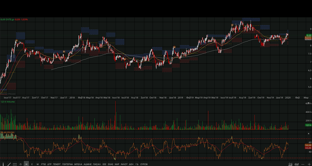 μετοχή έκλεισε στα 8,69 ευρώ, -1,03%. Διαγραμματικά το