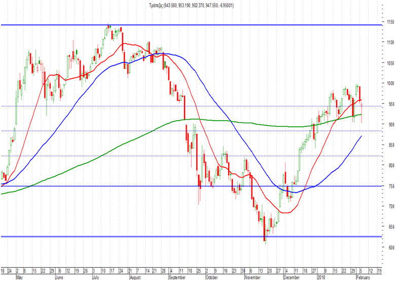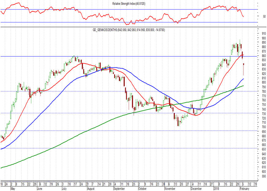 -1,74%). Χαμηλότερα οι επόμενες στηρίξεις είναι στις 800 και