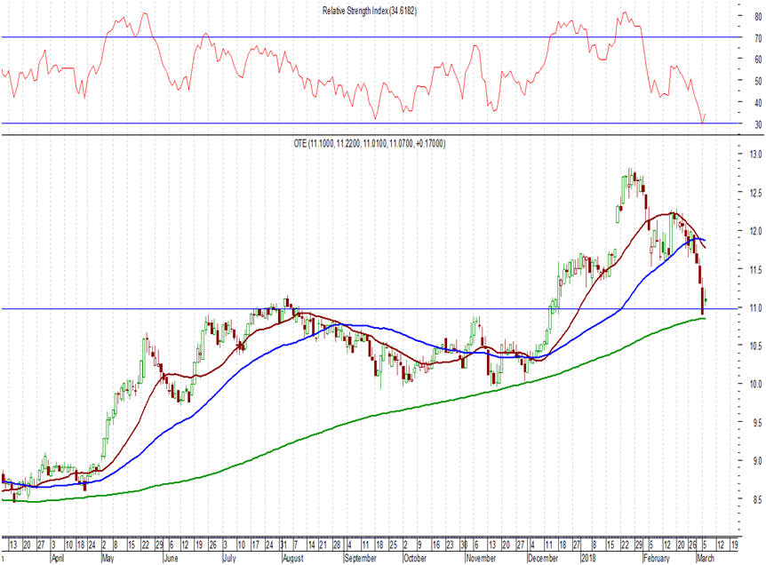 11,07 ευρώ (+1,56%) έκλεισε χθες η μετοχή του ΟΤΕ, με τη