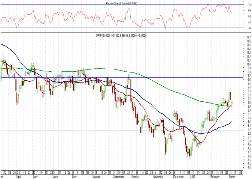 8,80 – 8,90 ευρώ. Χαμηλότερα οι επόμενες στηρίξεις είναι στα