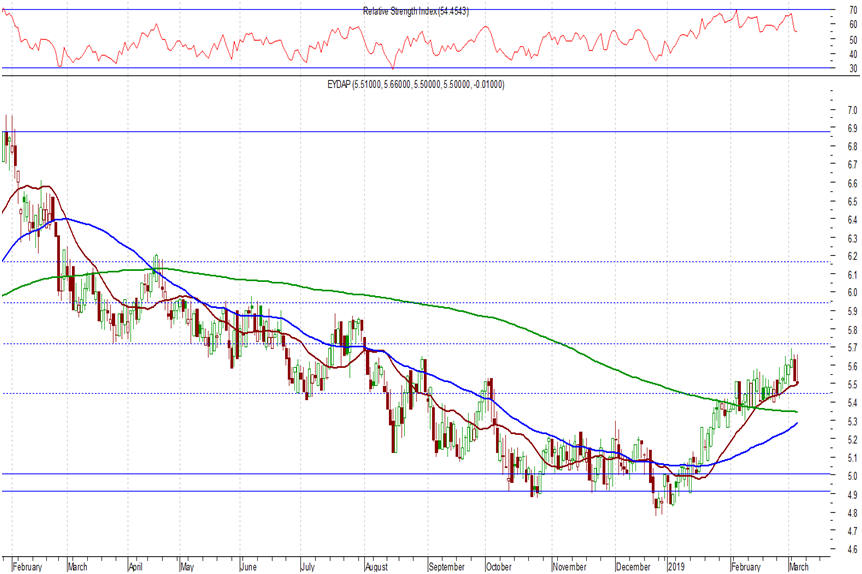 τονίσουμε η παραμονή υψηλότερα των 5,40 – 5,50 ευρώ (έκλεισε