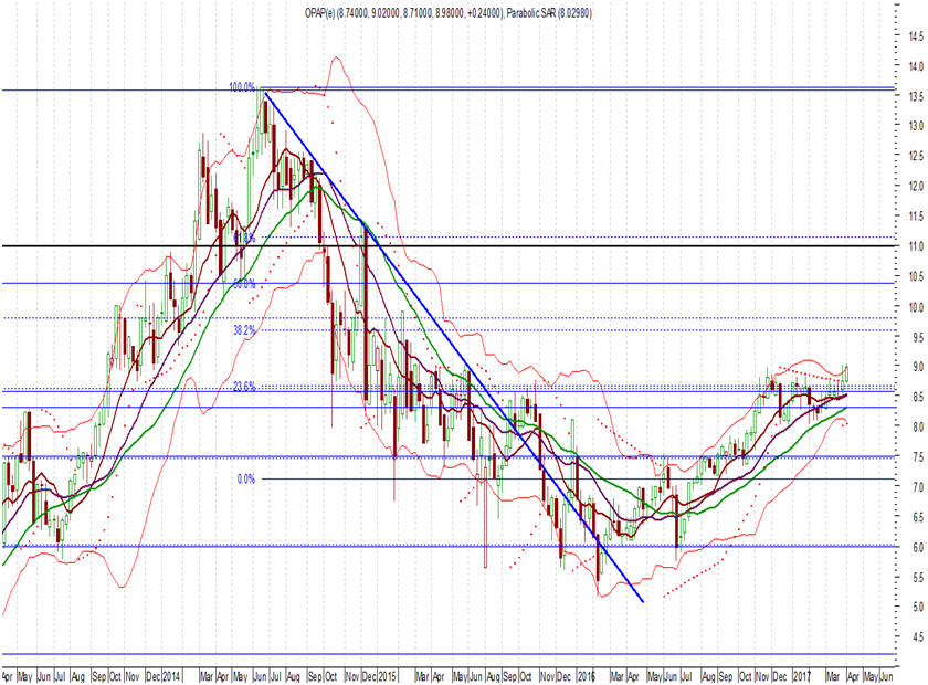 ΟΠΑΠ, ο οποίος χθες έκλεισε στα 8,95 ευρώ (-0,56%). Ο στόχος