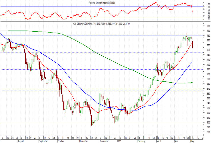 επόμενες στηρίξεις του ΓΔ (754,20 μονάδες, -2,60%). Μετά