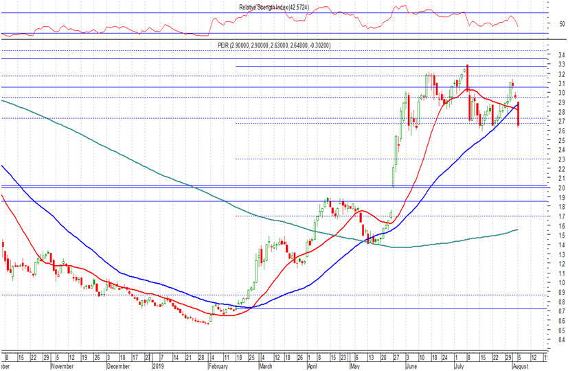 Παρόμοια με της ΕΤΕ θα λέγαμε πως είναι η διαγραμματική εικόνα της Πειραιώς, με τη βραχυπρόθεσμη τάση να προβληματίζει. Η μετοχή λοιπόν χθες έκλεισε στα επίπεδα των 2,694 ευρώ, +1,74%, με υψηλό ημέρας τα 2,74 και χαμηλό ημέρας τα 2,576 ευρώ. Το πρώτο λοιπόν ζητούμενο για τη μετοχή είναι να επιστρέψει άμεσα υψηλότερα των 2,80 – 2,81 ευρώ. Όσο μένει χαμηλότερα, τόσο αυξάνονται οι πιθανότητες να δοκιμαστούνε οι επόμενες στηρίξεις στα επίπεδα των 2,29 – 2,30 και 1,99 – 2,00 ευρώ, δηλαδή αισθητά χαμηλότερα από τα τρέχοντα επίπεδα, χωρίς φυσικά σε καμία περίπτωση να σημαίνει πως αυτές οι στηρίξεις θα προσεγγιστούν ντε και καλά.