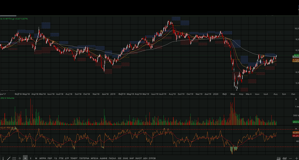 8,15 ευρώ, αντιστάσεις στις οποίες έχει κολλήσει η μετοχή