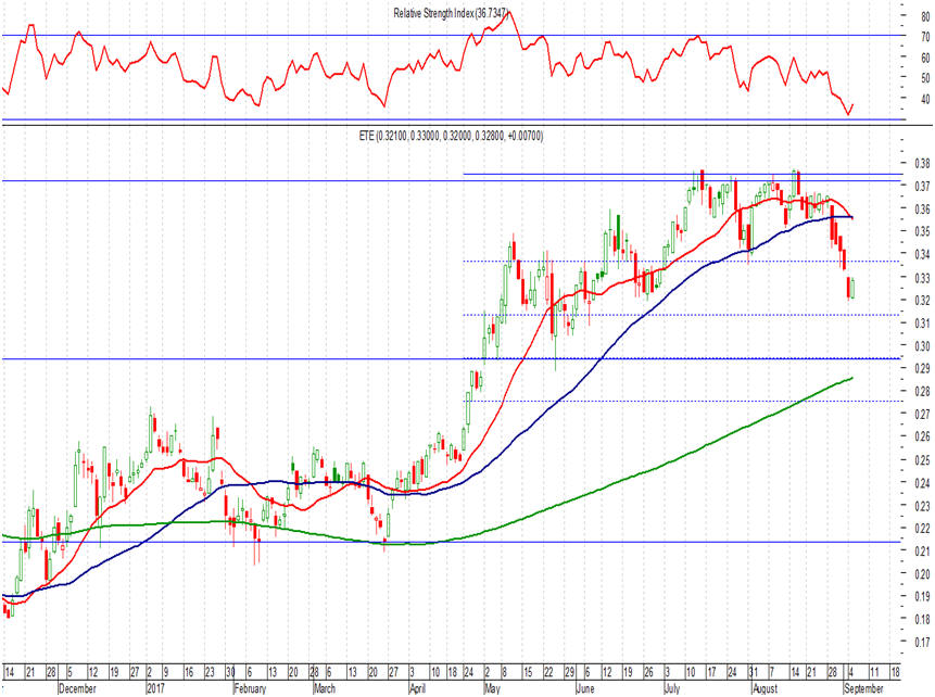 Στα 0,326 ευρώ έκλεισε χθες η ΕΤΕ (-0,61%), με τη