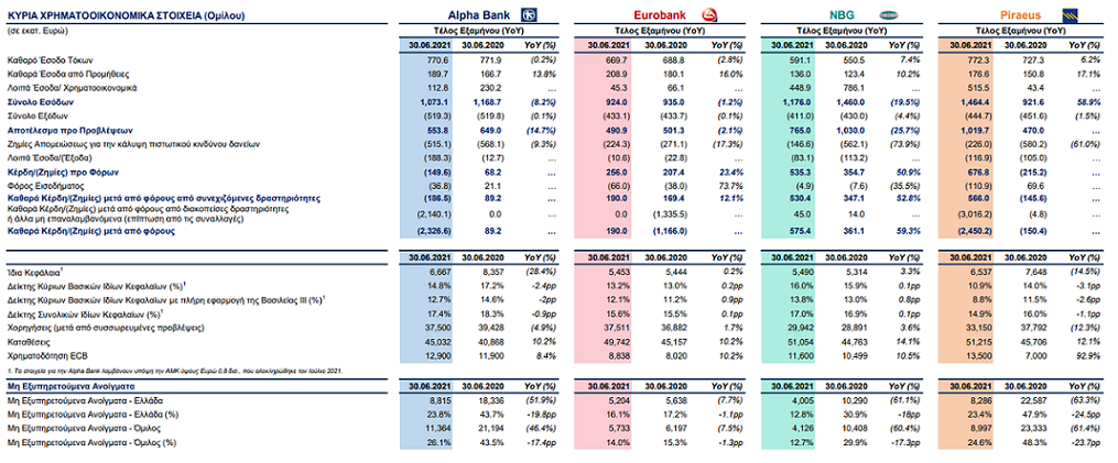 πίνακα συνοψίζεται η εικόνα των αποτελεσμάτων των 4 τραπεζών.