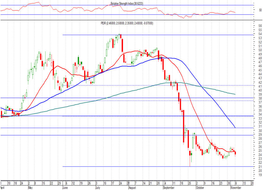 τις αντιστάσεις στα επίπεδα των 3,00 και 3,10 – 3,15 ευρώ.