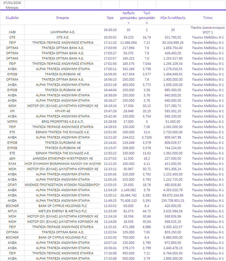 πακέτων στα μετοχολόγια των εισηγμένων εταιρειών, και ειδικά των