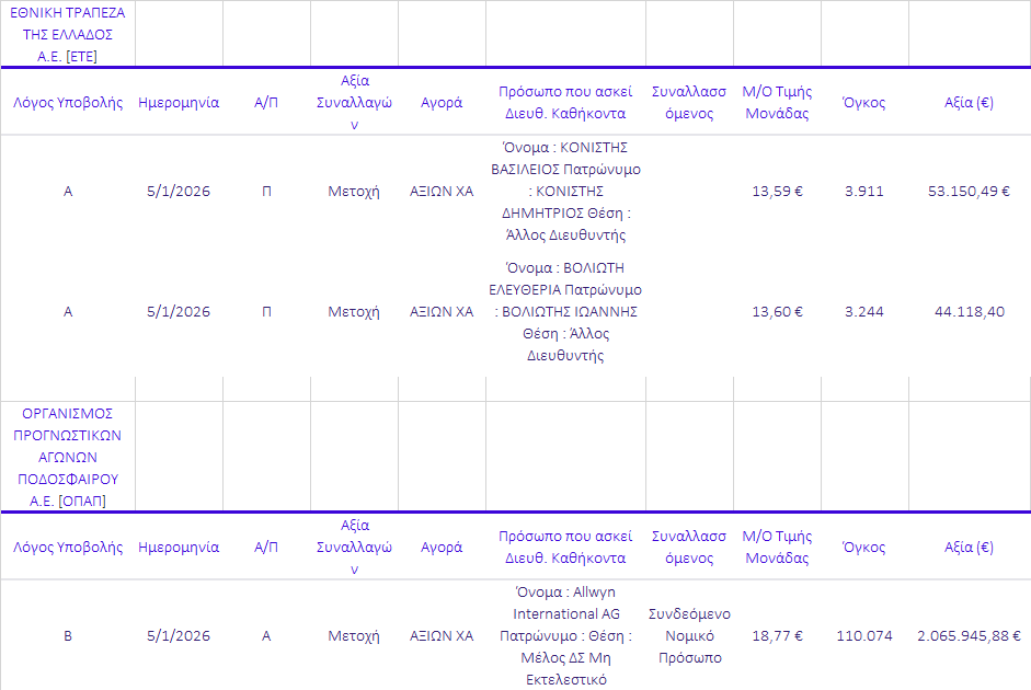 Γνωστοποιήσεις συναλλαγών |