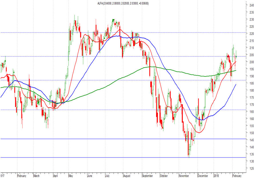 Στα 2,034 ευρώ (+0,49%) έκλεισε χθες η μετοχή της Alpha