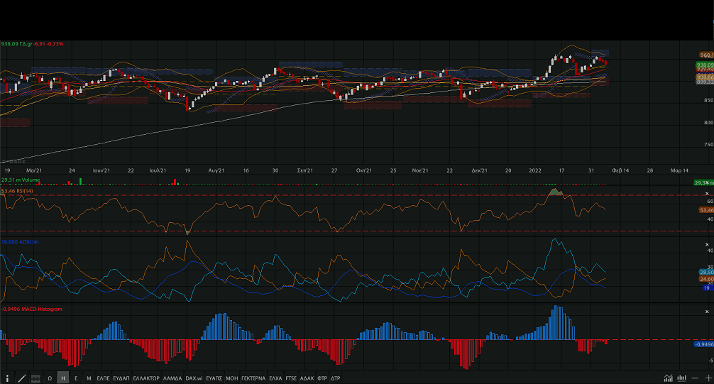 κλείνει χαμηλό ημέρας στις 938,09 μονάδες, -0,73%, με αρκετά