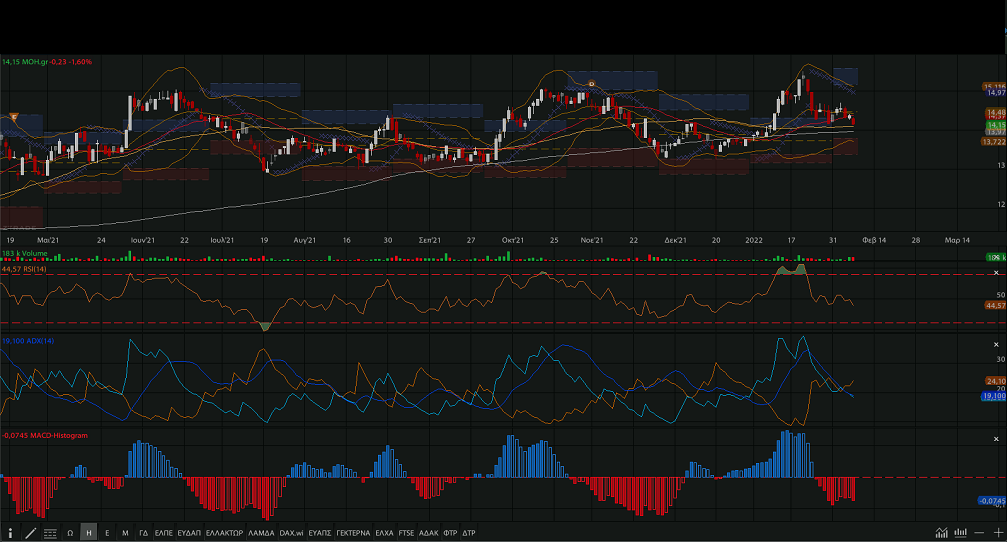νέα πτώση 1,60% έκλεισε χθες η ΜΟΗ (14,15 ευρώ), με τη