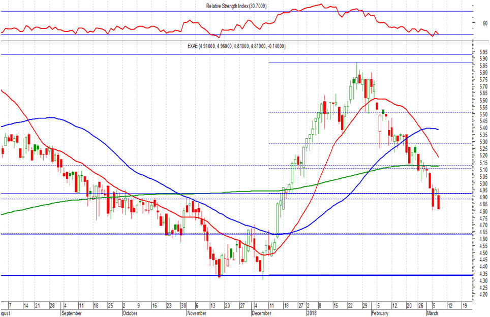 ΕΧΑΕ τώρα (κλείσιμο 4,805 ευρώ, -3,03%), η εικόνα έχει