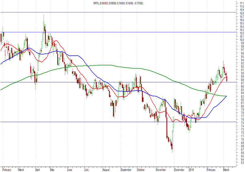 Χαμηλότερα, οι επόμενες ισχυρές στηρίξεις είναι στα 8,50