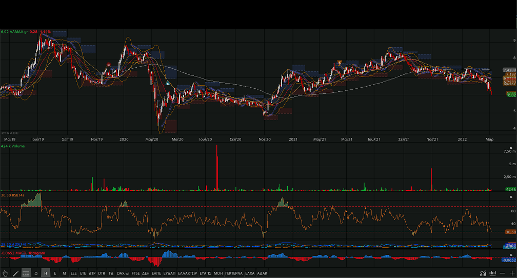στην περίπτωση της ΛΑΜΔΑ (6,02 ευρώ, -4,44%), με την τάση