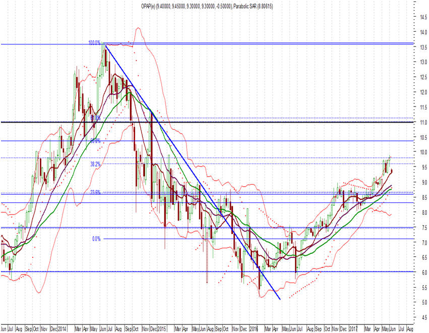 επόμενες στηρίξεις στα τρέχοντα επίπεδα των 9,20 – 9,30 ευρώ.