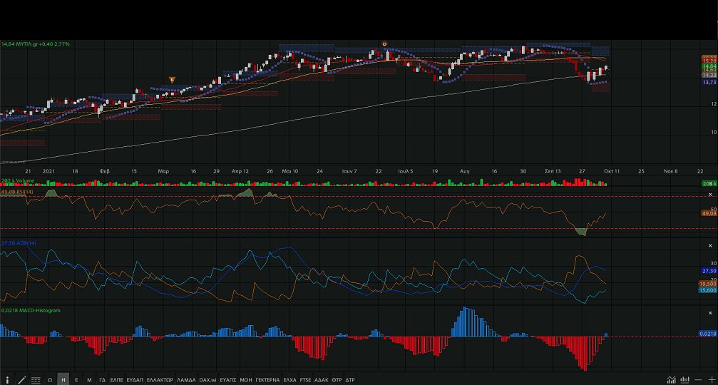 Μυτιληναίος (14,84 ευρώ, +2,77%, υψηλό ημέρας). Και