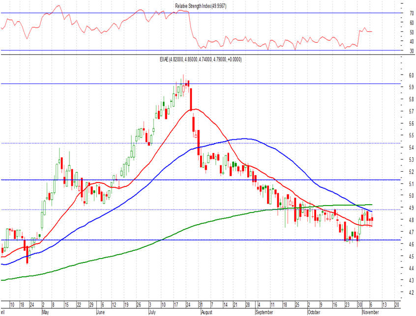 για την ΕΧΑΕ (κλείσιμο 4,79 ευρώ, αμετάβλητη), στην
