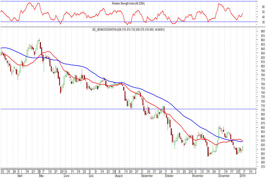 Στην Τράπεζα της Ελλάδος τώρα. Ας κρατήσουμε πως διαχρονικά η περίοδος του πρώτου τριμήνου κάθε έτους λόγω της αποκοπής και πληρωμής του μερίσματος είναι κατά μέσο όρο η καλύτερη περίοδος για τη μετοχή (έκλεισε χθες στα 12,30 ευρώ, -0,81%). Από άποψης τεχνικής ανάλυσης, οι επόμενες συνεδριάσεις είναι ενδιαφέρουσες. Και αυτό γιατί η μετοχή παλεύει με τις ισχυρές αντιστάσεις στα επίπεδα των 12,45 – 12,55 ευρώ. Διάσπαση τους, θα μπορούσε να δώσει μια σημαντική ώθηση στη μετοχή (θα μιλούσαμε για σημαντική βελτίωση), με κίνηση σε επίπεδα υψηλότερα των 13,00 ευρώ και επόμενο μεγάλο στόχο τις αντιστάσεις στα επίπεδα των 13,80 – 13,90 ευρώ!!!, ένας εφικτός στόχος αν δεχόμαστε το θετικό σενάριο, τουλάχιστον βραχυπρόθεσμα.