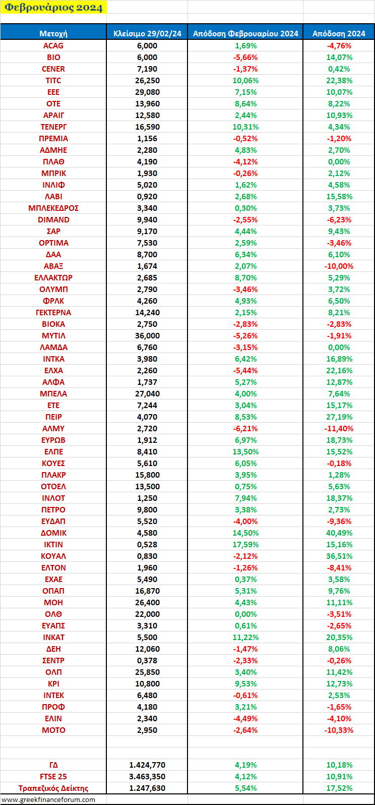 θυμίζοντας τις αποδόσεις όλων των μετοχών του ΓΔ κατά τον