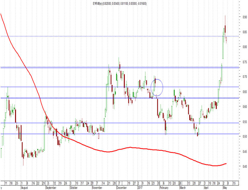 ευρώ, με τη διαγραμματική εικόνα της μετοχής να συνεχίζει να