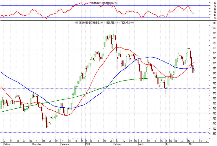 800 – 810 μονάδων, στηρίξεις τις οποίες κινδύνευσε χθες η