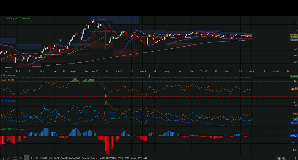 Στα της ΑΛΦΑ (1,117 ευρώ, +0,45%) το σκηνικό είναι γνωστό