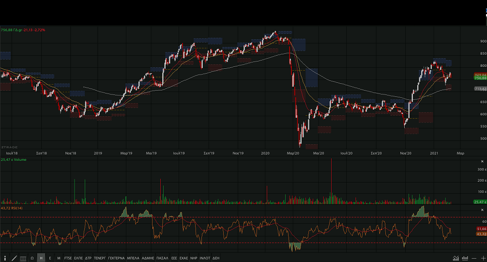κολλώντας και πάλι τις τελευταίες ημέρες στις αντιστάσεις στις 770 - 780 μονάδες.