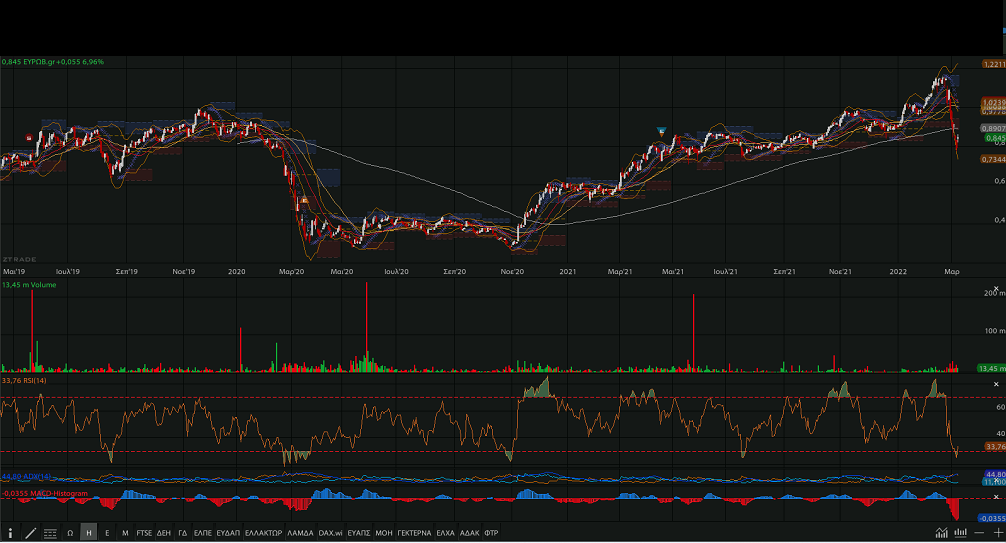 καταγράφηκε χθες στη μετοχή της Eurobank (0,845 ευρώ,