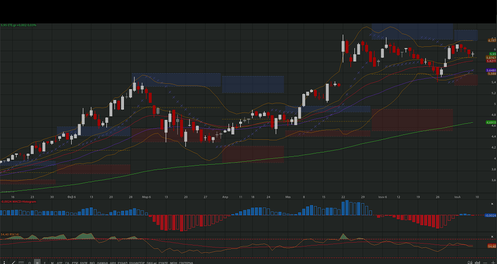 η μετοχή έκλεισε στα 5,95 ευρώ, +0,03%, με βασικό στοίχημα