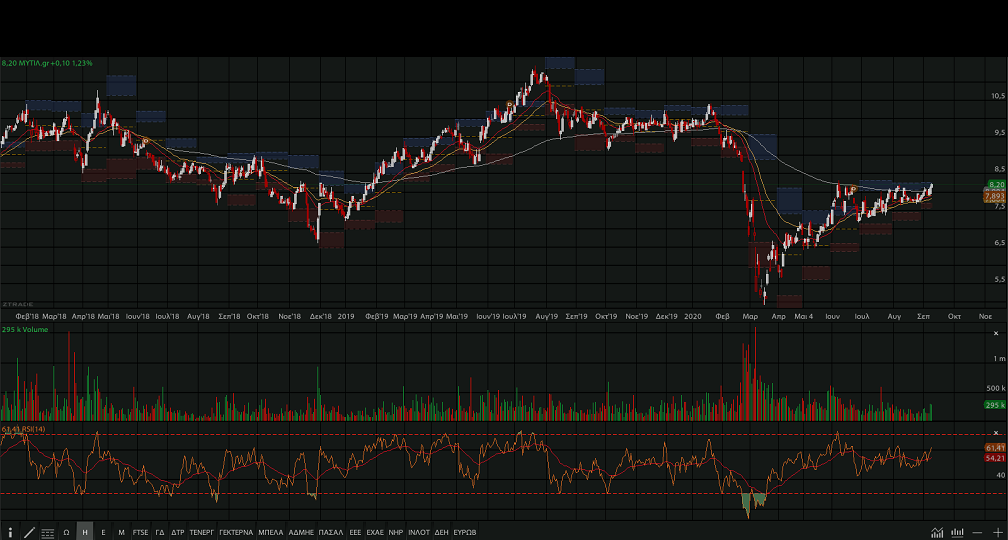 ισχυρές αντιστάσεις στα επίπεδα των 8,10 – 8,20 ευρώ, στα