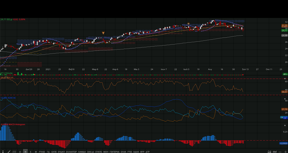 29,77 ευρώ, -3%, με την πτώση της λόγω και της στάθμισης που