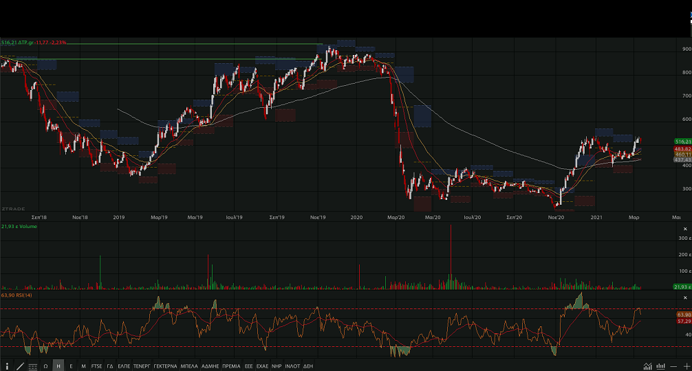 Και με το χθεσινό υψηλό ημέρας να είναι οι 530 μονάδες, ο