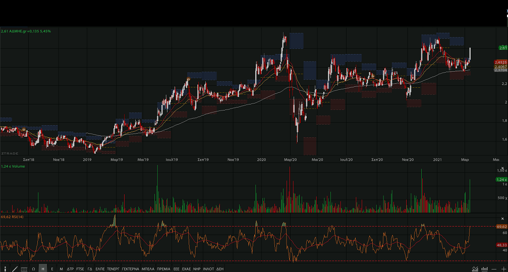Eντυπωσιακός χθες ο ΑΔΜΗΕ, στα 2,61 ευρώ, +5,45%, μια μετοχή