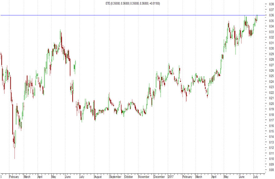 ΕΤΕ, με κλείσιμο στα 0,36 ευρώ (+3,15%) και το μεγάλο
