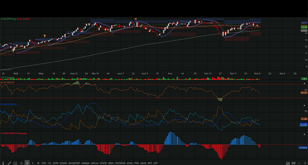 Με πτώση 0,92% έκλεισε χθες η Μυτιληναίος, στα 15,09 ευρώ,