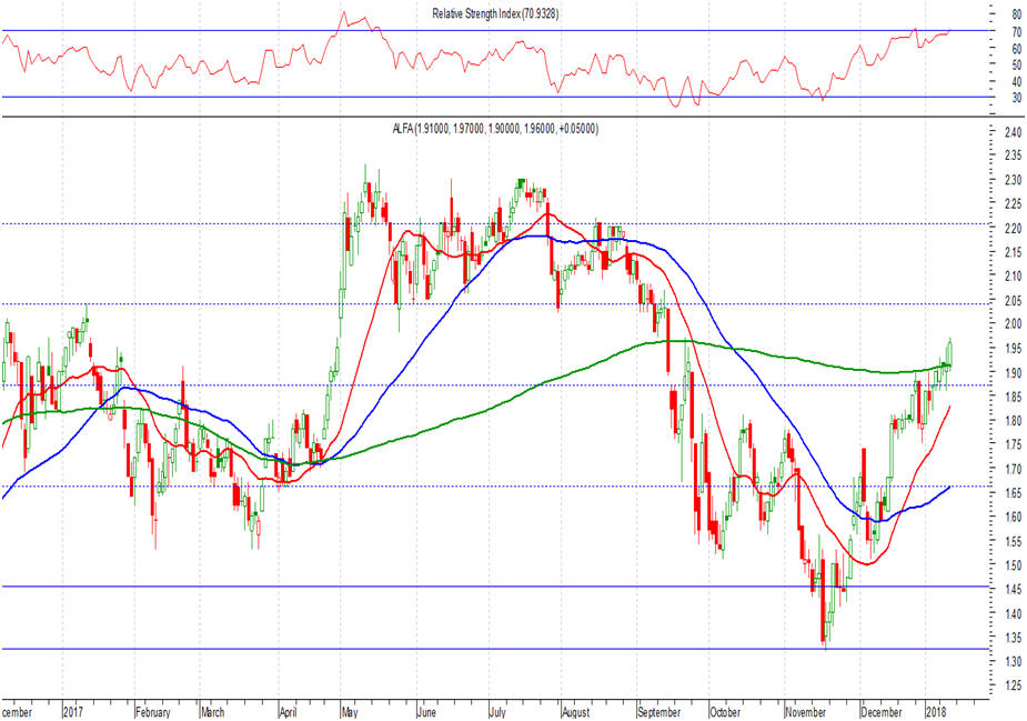Στα 1,96 ευρώ, +2,52% έκλεισε χθες η μετοχή της Alpha Bank,