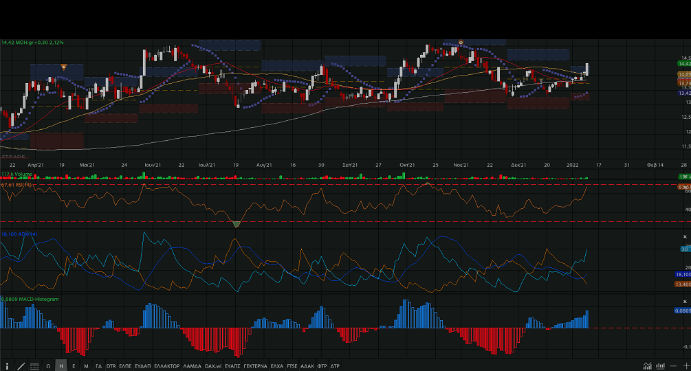 Στα 14,42 ευρώ, +2,12% έκλεισε χθες η ΜΟΗ, η οποία όπως και