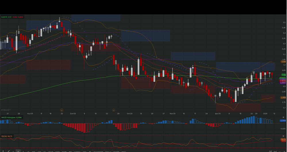 με επόμενους στόχους τις αντιστάσεις στα 3,15 – 3,20 ευρώ και,