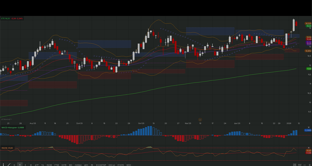 στηρίξεις εντοπίζονται στα επίπεδα των 13,50 – 13,40 ευρώ και