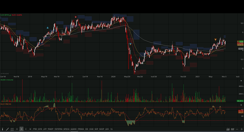 αντιστάσεις στα επίπεδα των 4,75 – 4,80 ευρώ (ισχυρές) και