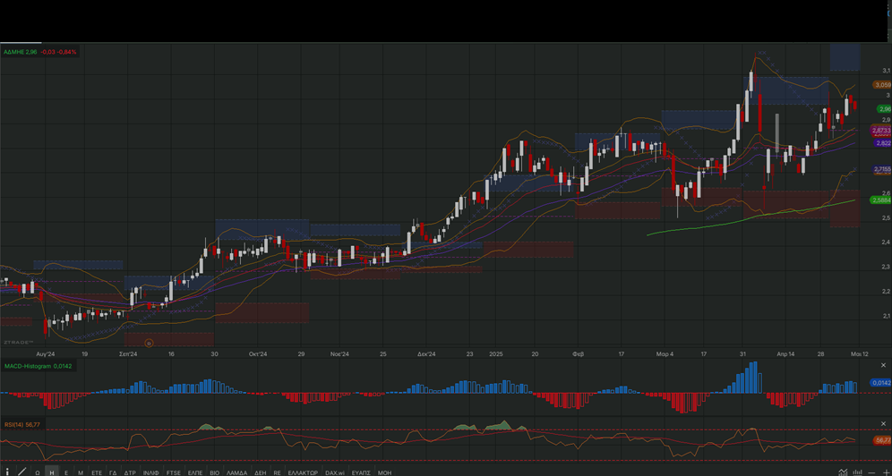 2,96 ευρώ (-0,84% την Παρασκευή). Διαγραμματικά, η τάση