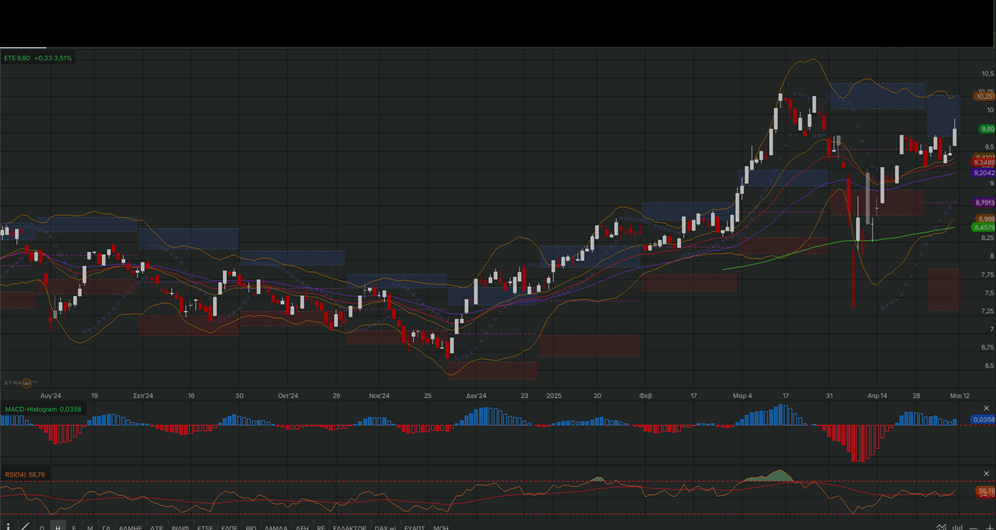 θετική τάση. Συγκεκριμένα, η μετοχή έκλεισε στα 9,80 ευρώ,