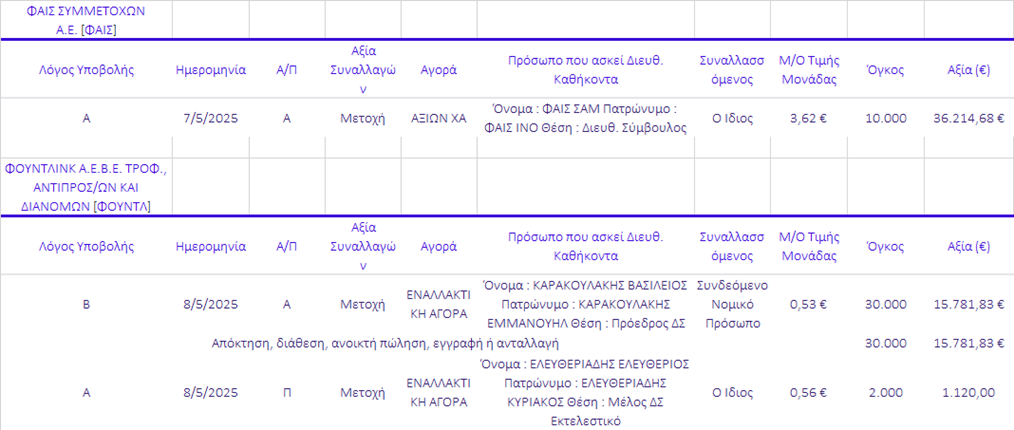 ΦΑΙΣ ΣΥΜΜΕΤΟΧΩΝ Α.Ε.