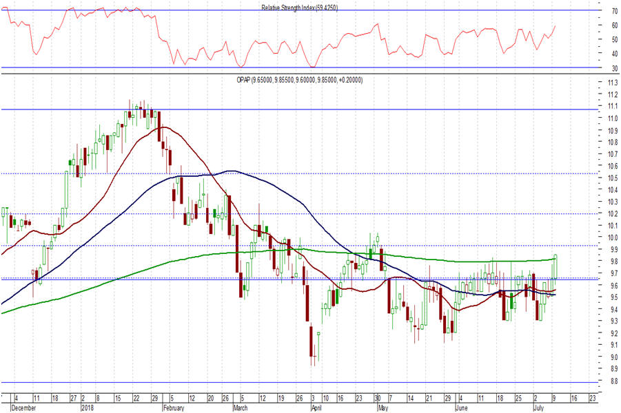 Σε ένα σύντομο σχόλιο τώρα για τον ΟΠΑΠ και με το Mundial να του έχει πάει εξαιρετικά (λόγω των εκπλήξεων), από άποψης τεχνικής ανάλυσης οι επόμενες συνεδριάσεις είναι πραγματικά ενδιαφέρουσες. Και είναι πολύ ενδιαφέρουσες (μέσα βέβαια σε ένα συνολικά πολύ μίζερο χρηματιστηριακό κλίμα) δεδομένου ότι η μετοχή επιχειρεί για ακόμη μια φορά να διασπάσει τις αρκετά ισχυρές αντιστάσεις στα επίπεδα των 9,80 – 10,00 ευρώ. Και απλώς θυμίζουμε πως διάσπαση αυτών των αντιστάσεων είναι ικανή να βάλει τη μετοχή σε ένα νέο ανοδικό trend, με σημαντικά περιθώρια ανόδου, πιθανόν και μέχρι τα υψηλά στα τέλη Ιανουαρίου, τα 11,00  -11,20 ευρώ (τα οποία είναι και ισχυρές αντιστάσεις).
